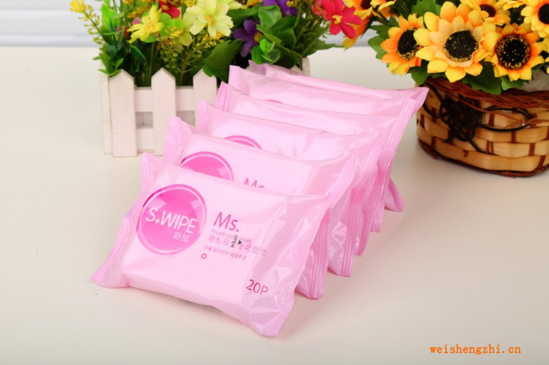 » 工厂直销舒拭20片女性便携式擦拭湿巾女性隐私性专用湿纸巾